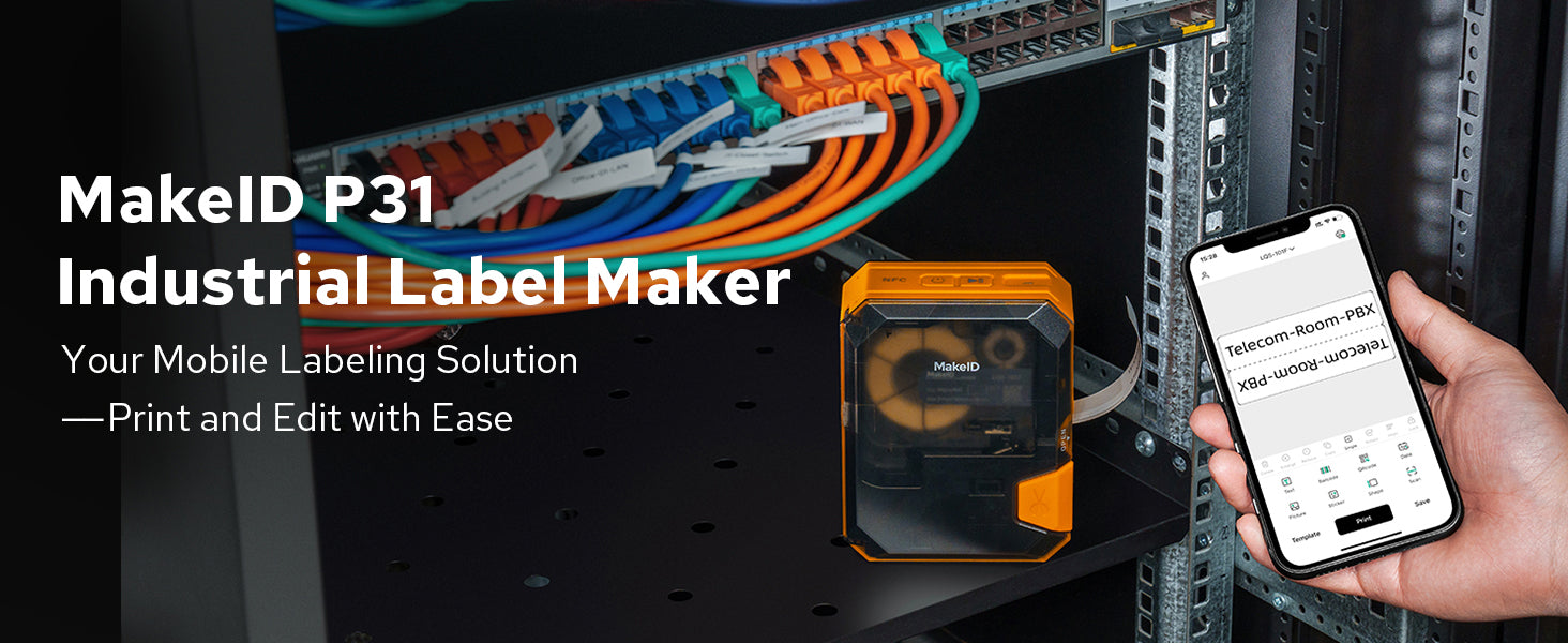 MakeID P31S Best Portable Heat Transfer Label Printer for Electrical Cable, Wire Labeling, Cable Tags & Industrial Tube Marking